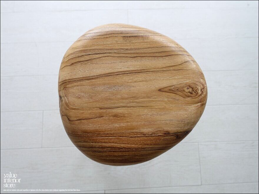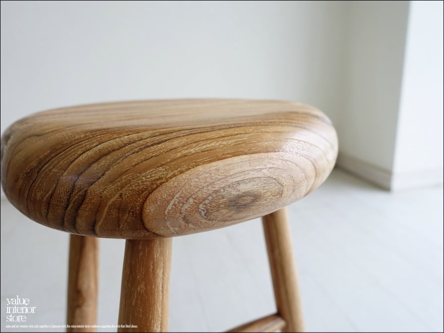 ナチュラルな座面にはチーク材の個性的な木目が現れていて、ナチュラルな雰囲気を存分に楽しめるスツール。細身の脚ですがそれぞれのジョイント部分を丁寧に製作していますので、とてもしっかりとした頑丈な作りです。表面は無垢材の素朴な質感を引き立たせています。