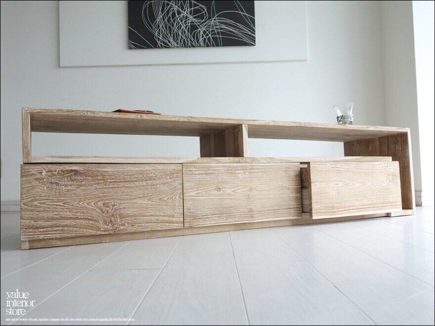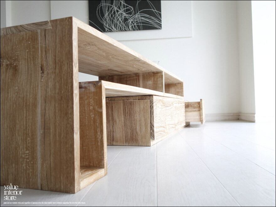 チーク総無垢材で製作したシンプルなデザインのテレビ台。