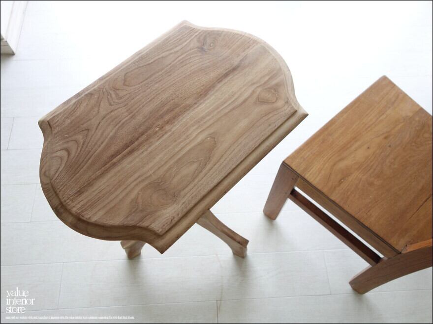 一目見ただけで木目の味わい深さを感じられるチークのテーブル。落ち着いた雰囲気があります。