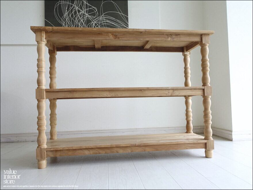 ナチュラルで素朴な質感は、経年変化でいわゆるチーク色へ徐々に変化していくところも楽しみの一つです。余分な装飾を無くしたシンプルな棚板と、丸く柔らかな印象の脚とのバランスがとってもかわいいですよ♪
