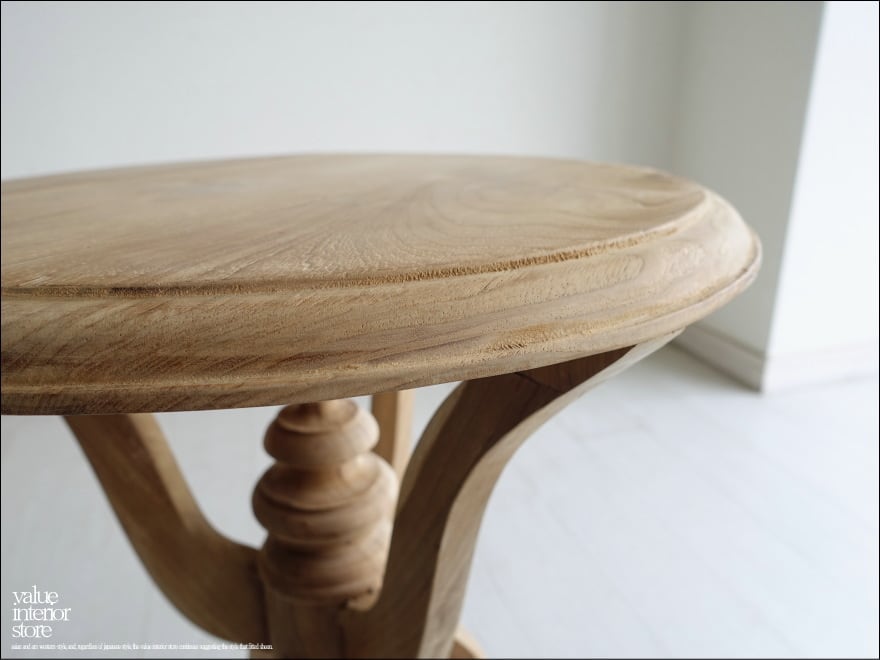 落ち着いた大人の雰囲気があります。チークの硬く張りのある特徴を引き出す丸型の天板を美しい脚が支えていて、そのバランスがとても上品です。