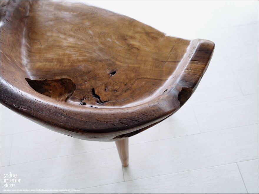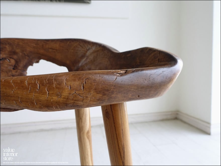 プリミティブなチーク材を座面に使用したチェア。どこか柔らかな印象も受けます。