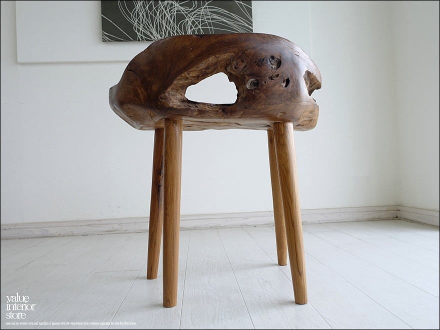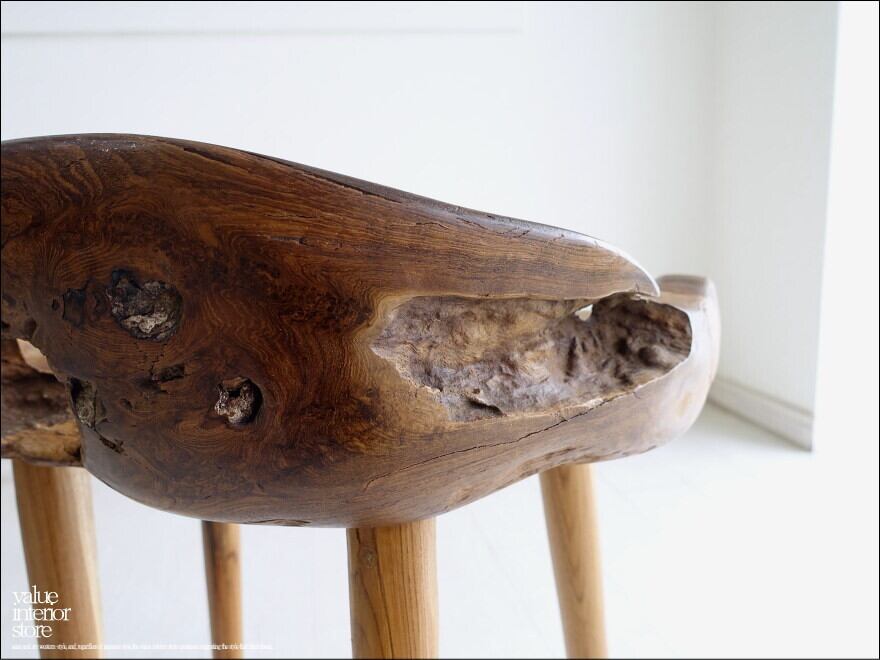 チーク無垢材 プリミティブチェアN09 イス 椅子 ベンチ 木製チェアー 天然木 手作り ナチュラル 素朴 銘木家具 一点物