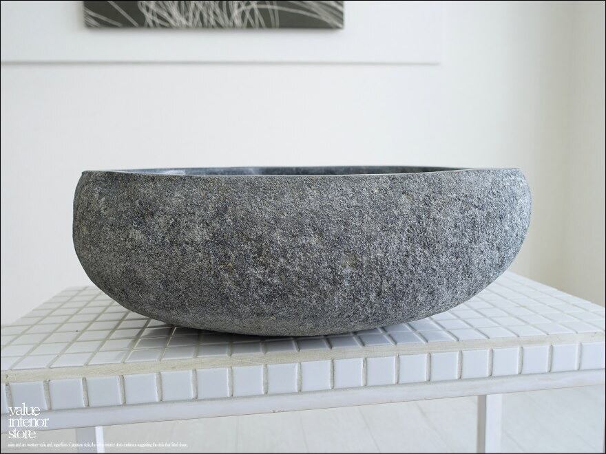 一つとして同じ形のない自然に作られたボウル状の形と色合いや質感に、落ち着いた和の雰囲気が感じられる自然石の洗面ボウル。