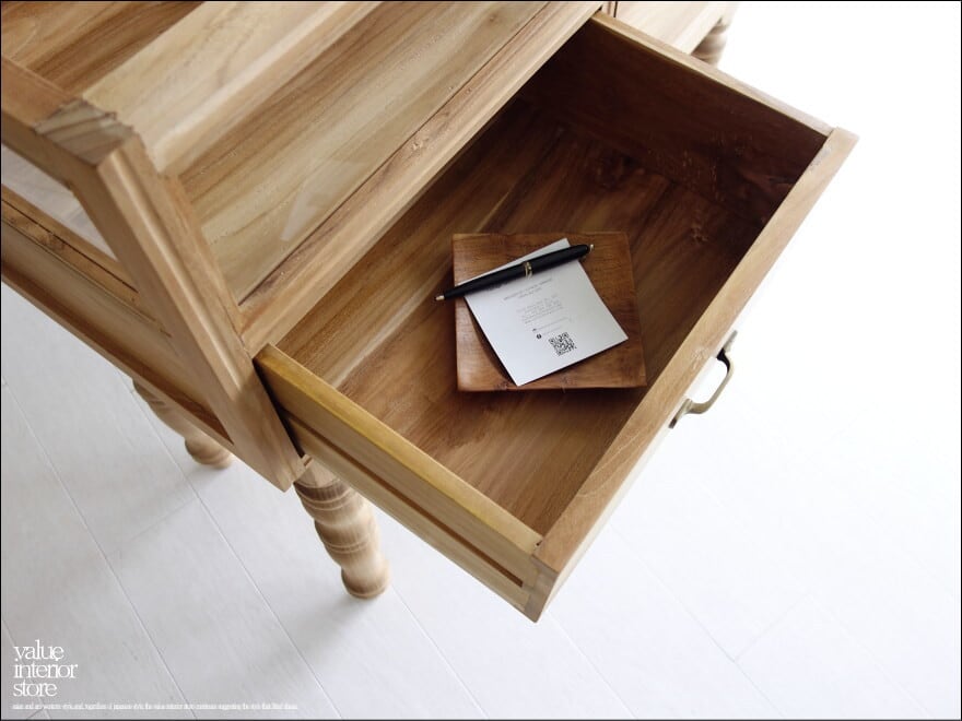 ◇日本製のような正確さは無いかもしれませんが、1点1点出来上がるまでの殆どの工程を手作業で行う、インドネシア家具職人たちの手造りの製法にはとても暖か味が感じられます。細かな傷ワレやフシ穴、色の濃淡、また反りなどの無垢材特有の”暴れ”が見受けられる場合がございますが、素材や手づくりのテイストとして工業品にはない自然の質感をお楽しみ下さい。