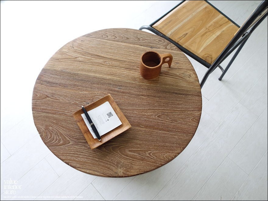 ヴィンテージサイドテーブルAnqbo20 丸テーブル 円形テーブル 什器 コーヒーテーブル チーク材 一点物 再生家具 無垢材家具