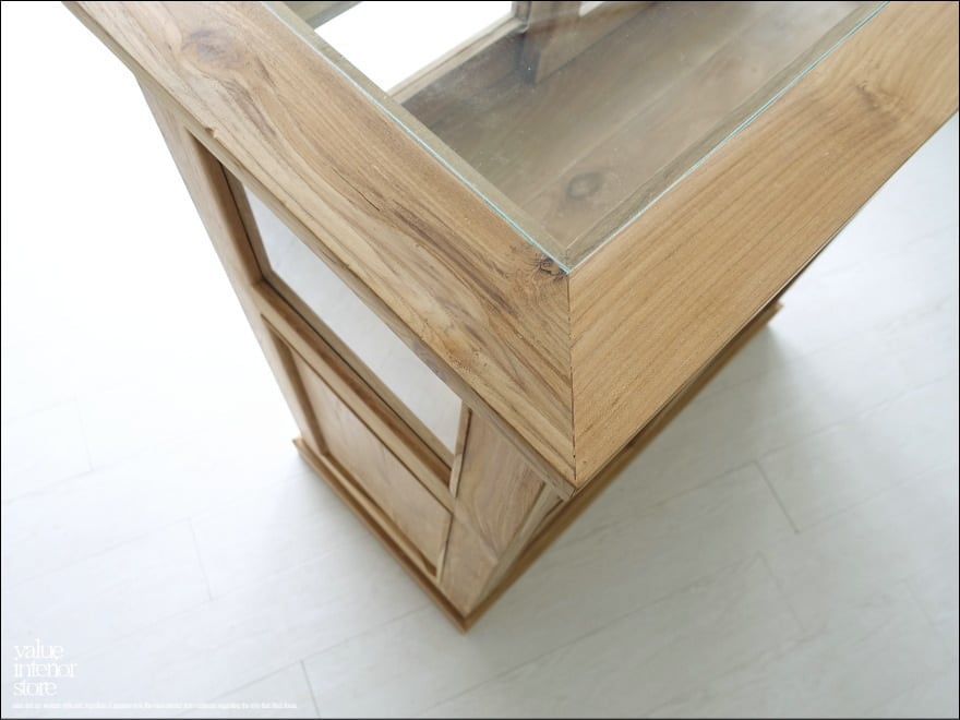 「 S 様 サイズオーダーカウンター 」チーク総無垢 ショーケースカウンターNatla90 ガラスケース 飾り棚 店舗什器 レジ台 手作り 無垢材家具