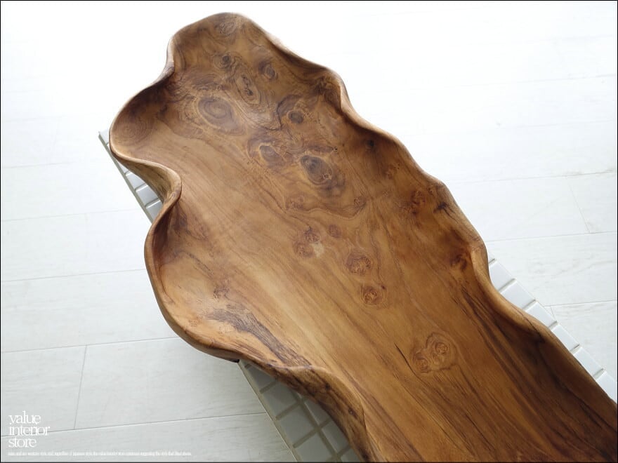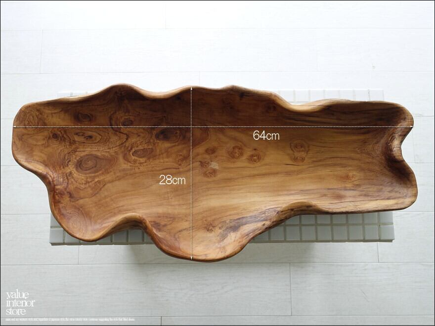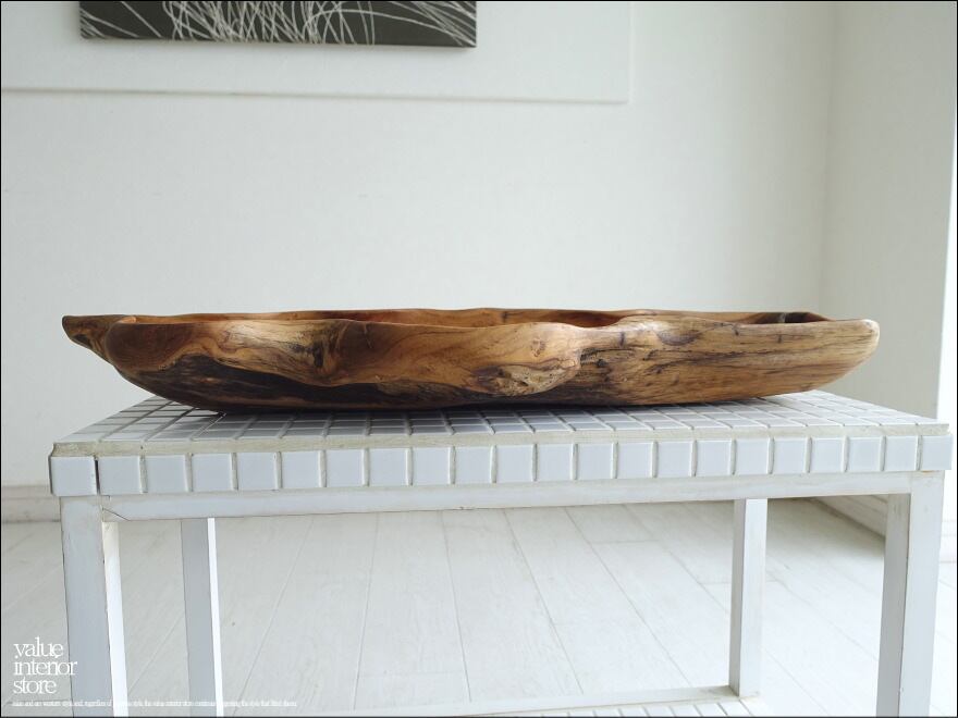 チーク無垢材 大型プリミティブトレイN64cm 大型食器 菓子鉢 サラダボウル 入れ物 自然な様 ナチュラル 世界三大銘木