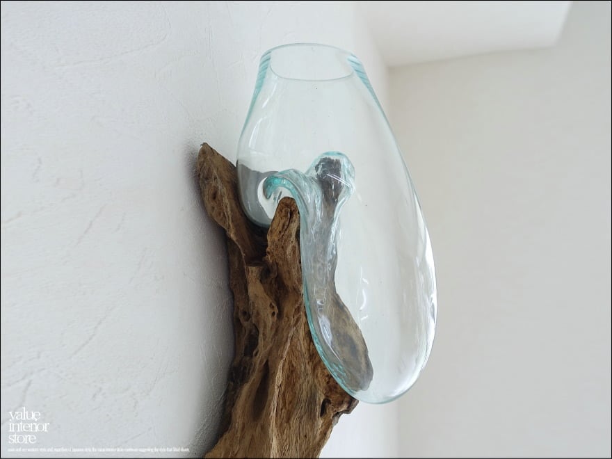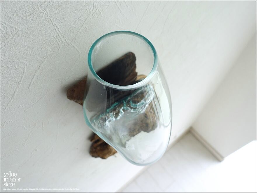 硝子フラワーベースwall/03 花瓶 プリミティブガラスベース 壁掛け 花器 一輪挿し 吹きガラス 手づくり 無垢材 自然な様