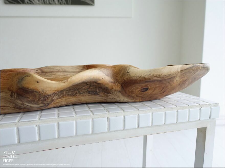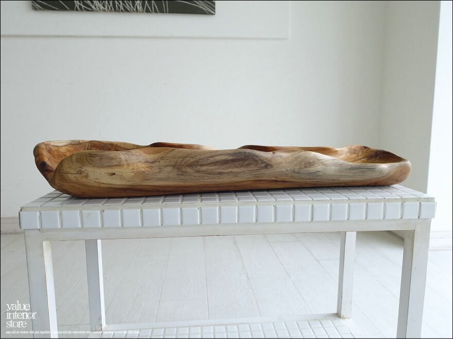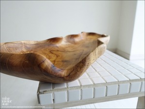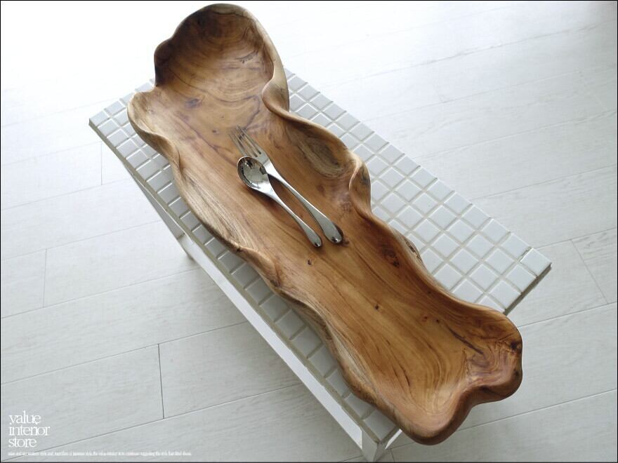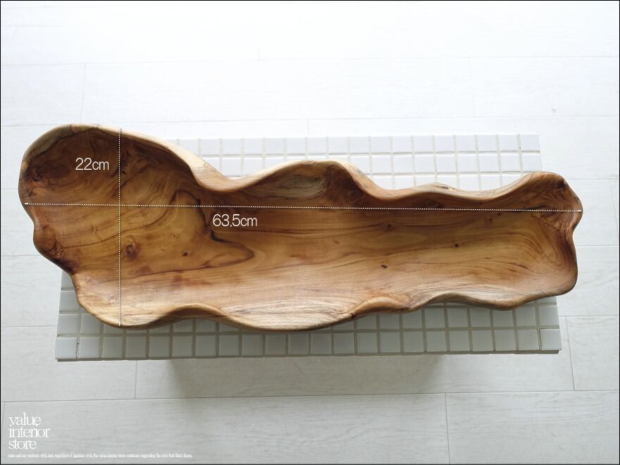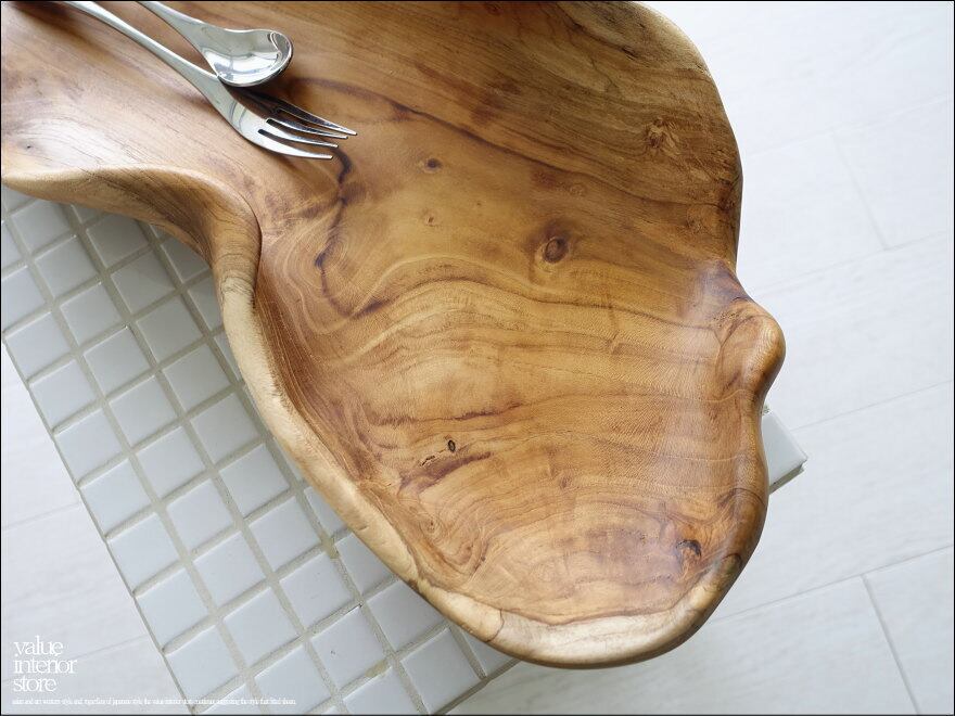 チーク無垢材 大型プリミティブトレイN63.5cm 大型食器 菓子鉢 サラダボウル 入れ物 自然な様 ナチュラル 世界三大銘木