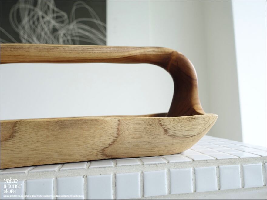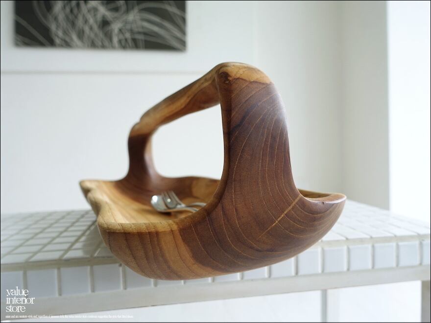 チーク無垢材 プリミティブトレイN/09 カトラリートレイ フルーツトレイ フルーツバスケット 収納かご 削り出し 小物入れ 世界三大銘木