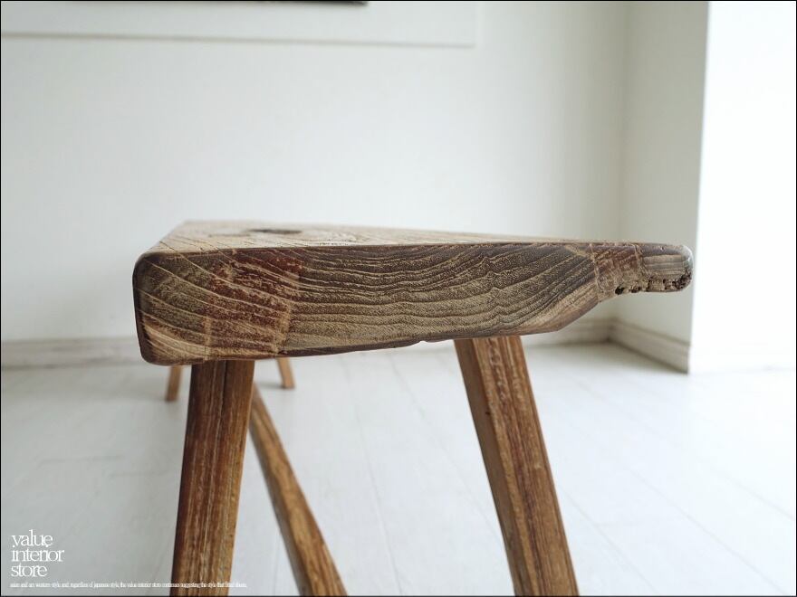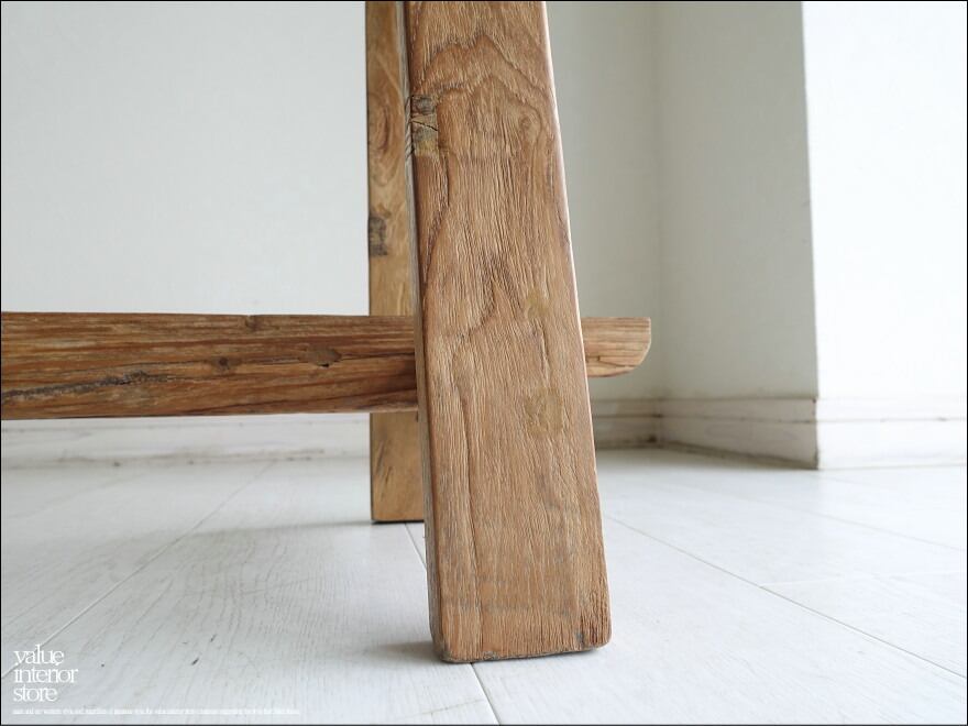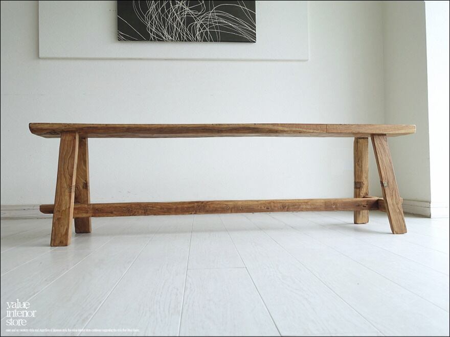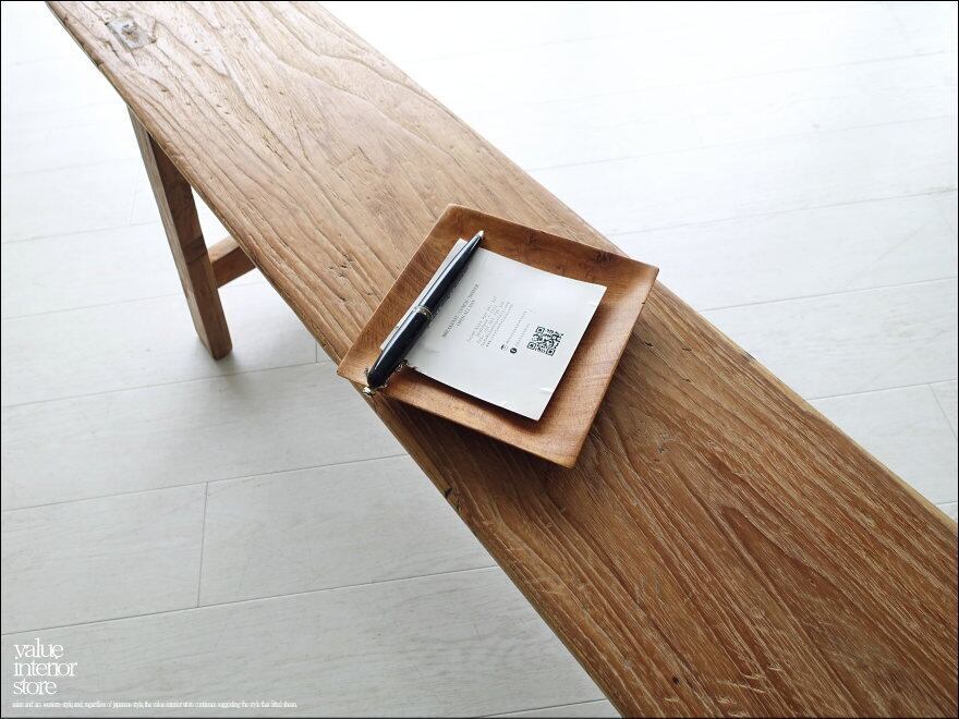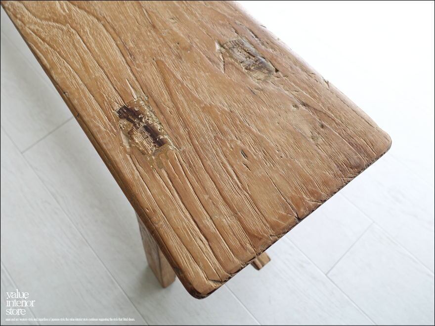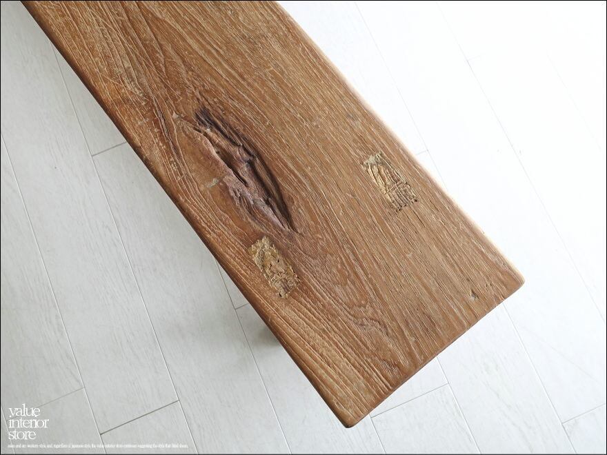 オールドチークならではの味のある雰囲気が魅力のベンチ。一枚板の座面は厚みもあり長くお使いいただけるしっかりした作りです。チークならではの荒々しさと、古材ならではの変化に富んだ木肌が全体的に見られ味わい深く仕上がっています。職人さんが丹精こめて作った印象に溢れていて、きっとお部屋をスローダウンした素敵な雰囲気に包んでくれます。ベンチだけでなくインテリアのディスプレイ台としてもステキです。