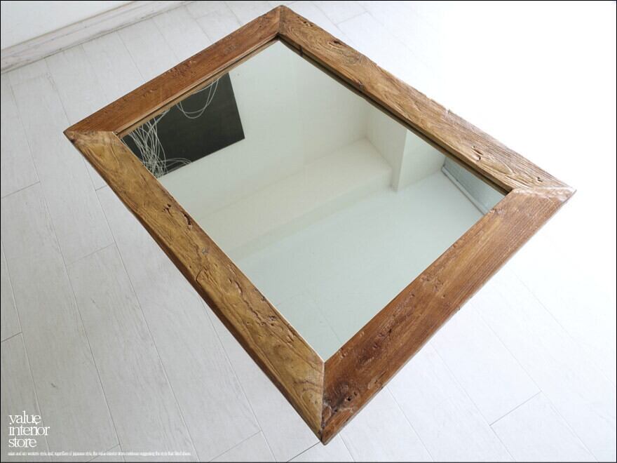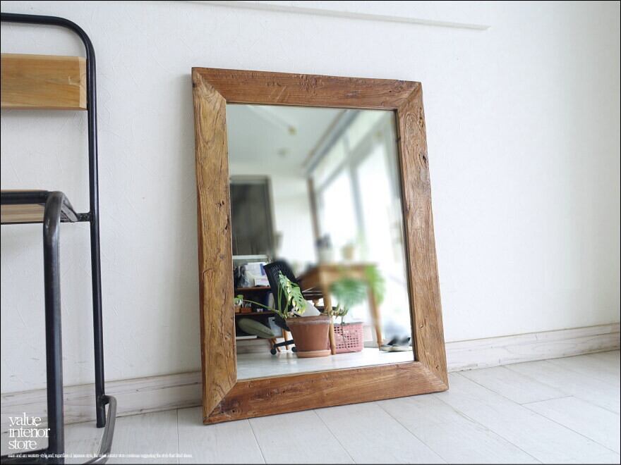 古材 鏡 壁掛けミラー オールドチークフレームミラー壁掛80/X03 レトロ 手作り 総無垢 自然な様 古材家具 W60 x H80cm
