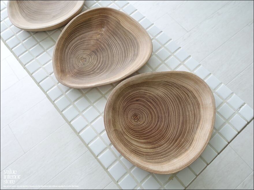 ナチュラルなチーク材の自然な曲線が素敵なプレート。チークの独特で味のある木目を活かしていて、ハンドメイドながらなめらかな仕上がりで職人の技術が感じられます。