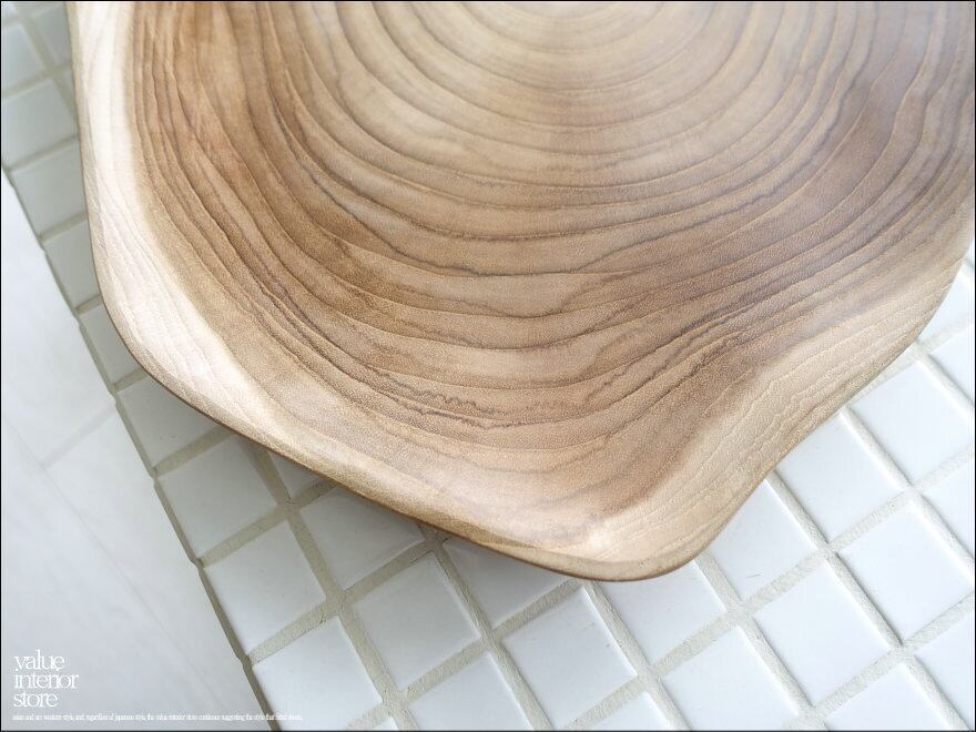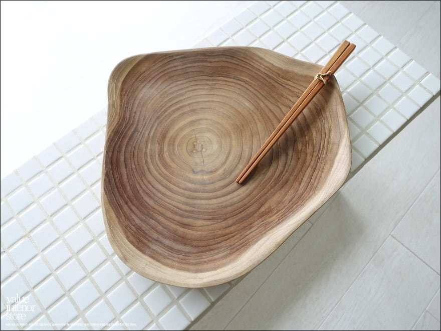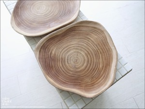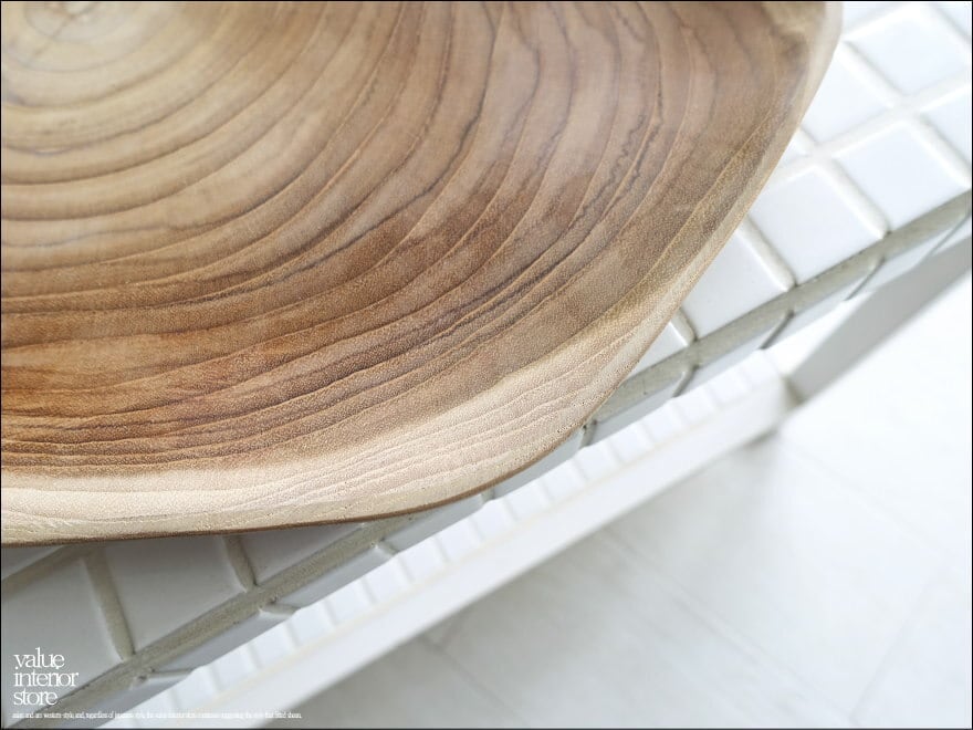 ナチュラルなチーク材の自然な曲線が素敵なプレート。チークの独特で味のある木目を活かしていて、ハンドメイドながらなめらかな仕上がりで職人の技術が感じられます。