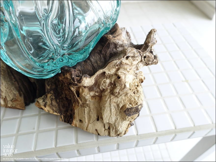 プリミティブな無垢材と吹きガラスを使ったデキャンター。一点一点手作りで同じ形のものはなく、どちらの素材も大変個性的で味があります。ちょっとしたお花を生けたり、ポプリ入れとして、また小物をディスプレイしたりお好みでお使いいただけます。