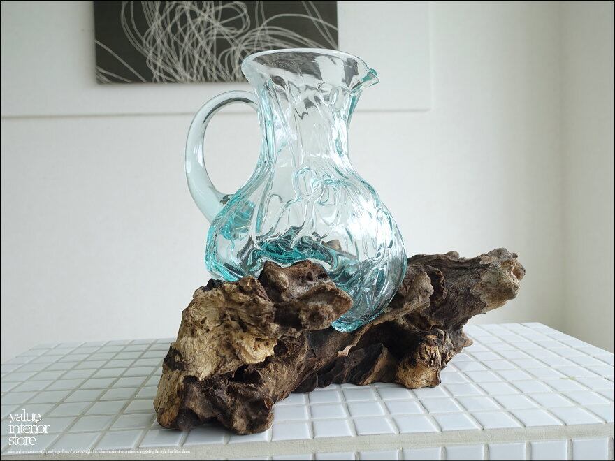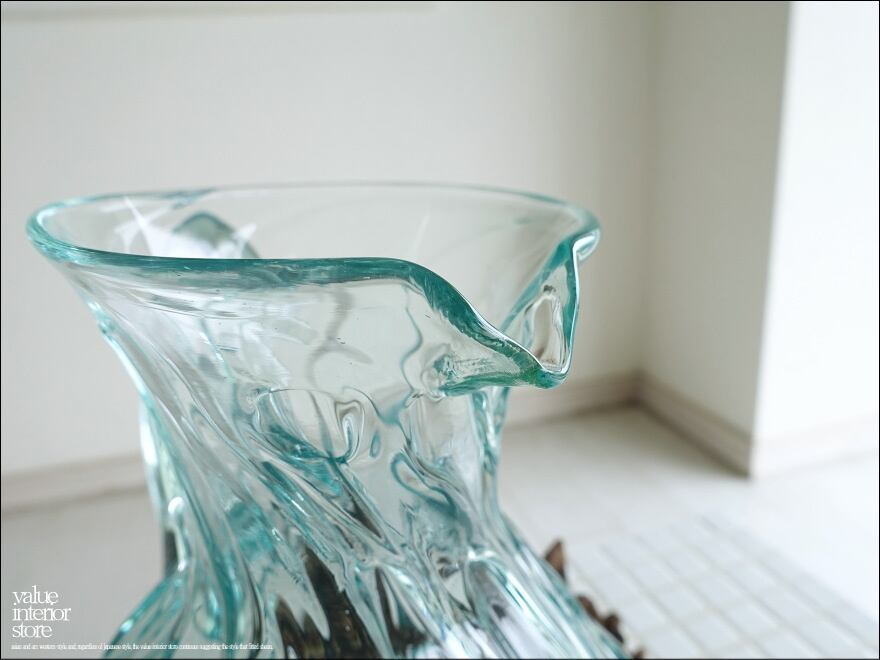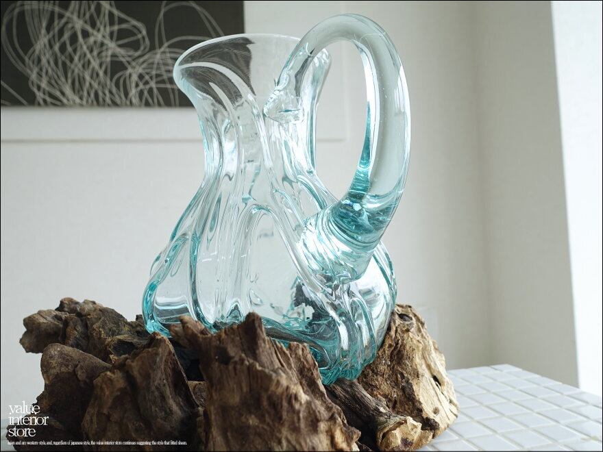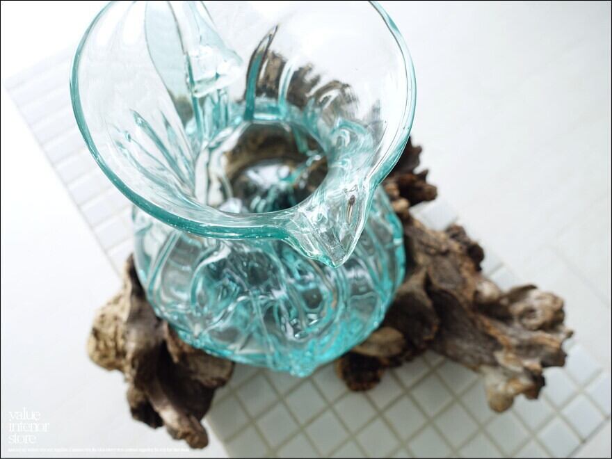硝子デキャンタ/k ガラスピッチャー フラワーベース ガラスベース 手作り ポプリ入れ 花瓶 一点物 ハンドメイド 無垢材 デカンタ 自然な様