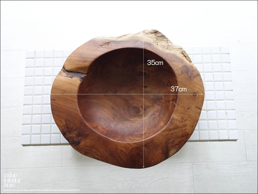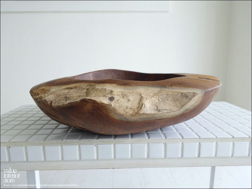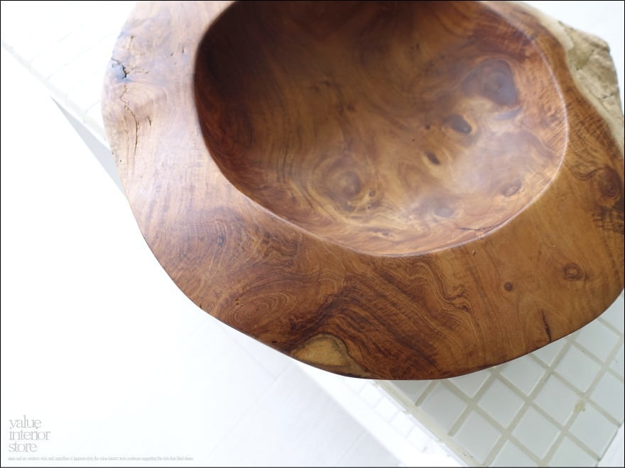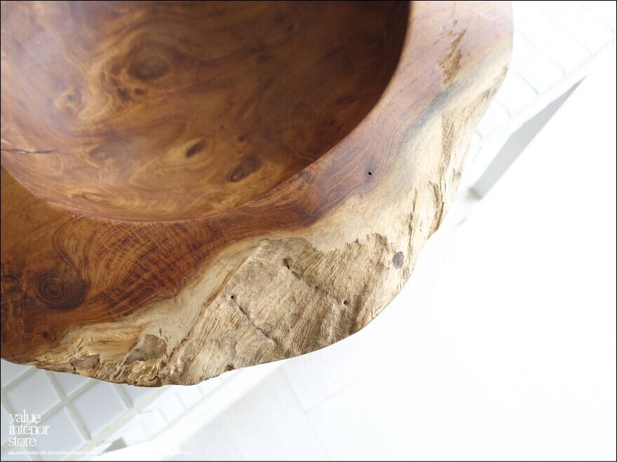 チーク無垢材 大型プリミティブオーバルトレイ / N01 入れ物 大型食器 サラダボウル 自然な様 ナチュラル Φ37cm 世界三大銘木