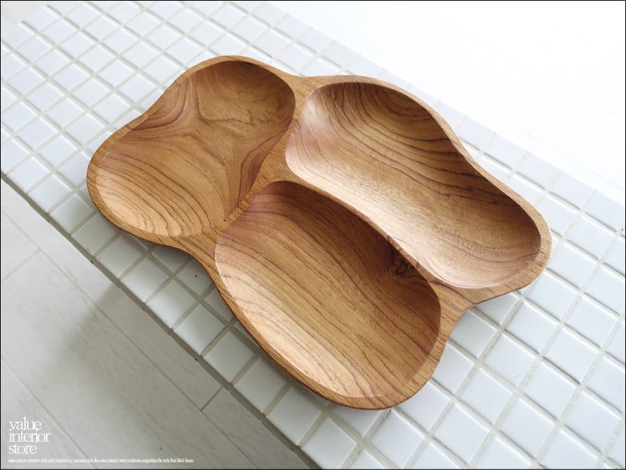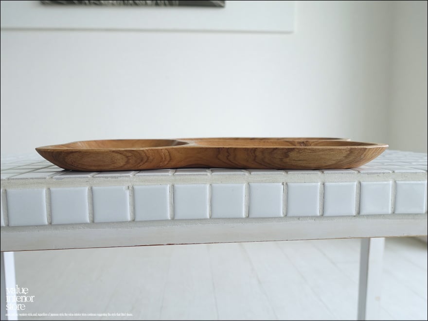無垢材のチーク材の仕切り皿。盛り付けるだけで食卓のアクセントになり、いつものお食事を引き立たせてくれます。硬くて張りのあるチーク材の独特の細かな木目を活かし魅力的に仕上がっています。木製食器ならではの滑らかで口当たりの良い仕上がりとなっています。