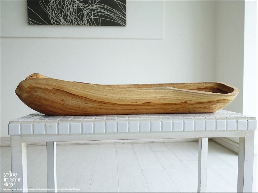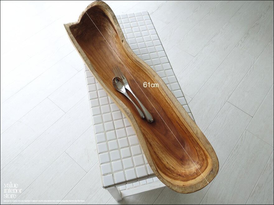 チーク無垢材 大型プリミティブロングトレイ / N61cm 大型食器 盛り皿 サラダボウル 入れ物 自然な様 ナチュラル 世界三大銘木