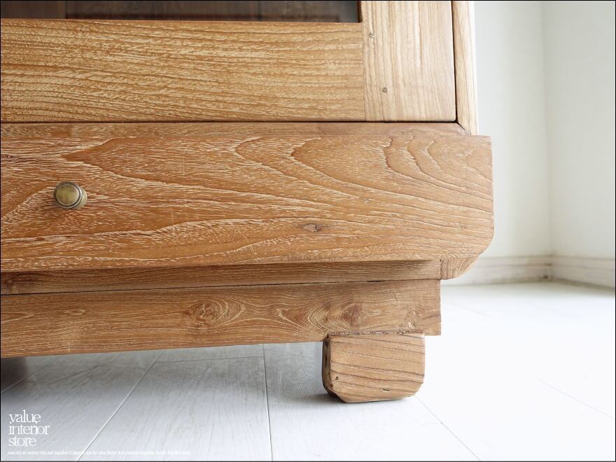 古い歴史を感じさせる佇まいが魅力のチーク総無垢のアンティークキャビネット。