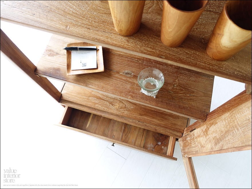 ◇チーク無垢材は人間のお肌同様に、長時間、直射日光や冷暖房の風のあたる場所や湿気、乾燥が著しい場所を嫌います。反りや割れ、退色の原因になりますのでお避けください。