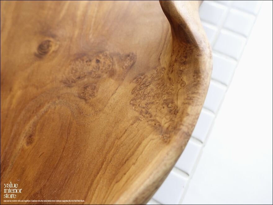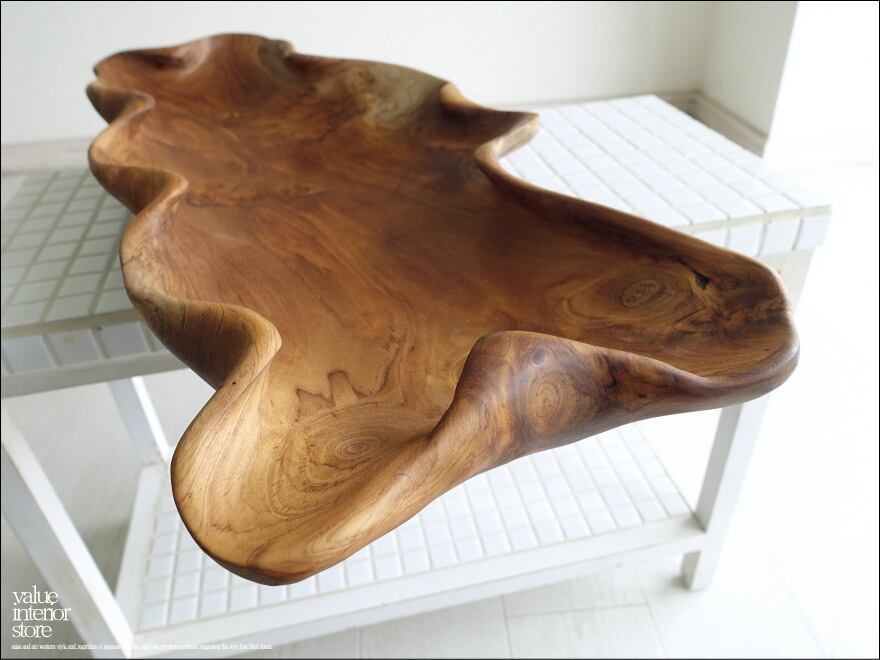 変化に富んだプリミティブで素朴な質感のチーク無垢材の大型トレイ。同じ形の無い味のある形は一点物の良さを感じさせてくれます。表面はミネラルオイル(ライム油・大豆油・チョウジ油・ナツメグ油)仕上げで、サラダボウルなどの食器としてもお使いいただけます。(輸入申告の際の食品等輸入届出書提出済み)