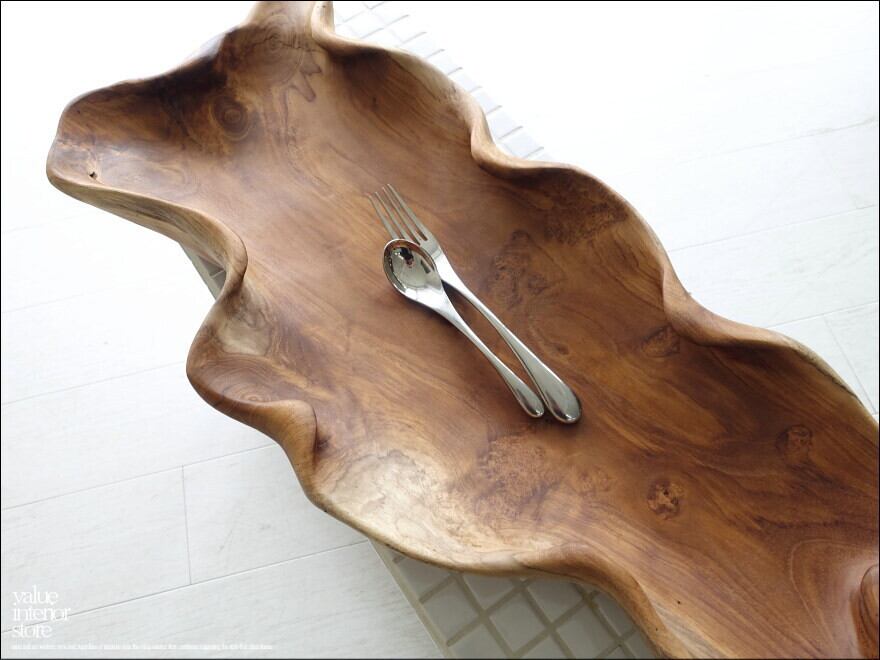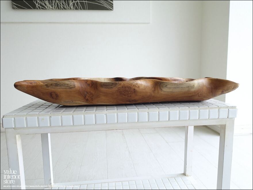チーク無垢材 大型プリミティブトレイN62.5cm 大型食器 菓子鉢 サラダボウル 入れ物 自然な様 ナチュラル 世界三大銘木
