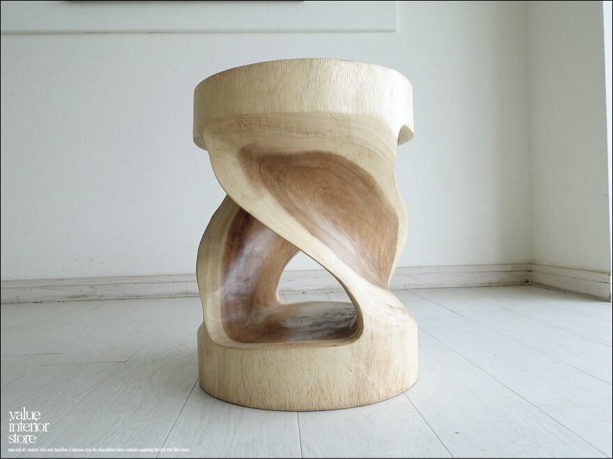 コロンとしていて螺旋状にくり貫いてあるデザインも素敵です。ナチュラルな雰囲気で幅広いテイストに合わせやすく設置しやすいスツール。スツール以外にも花台やディスプレイ台としてもお勧めです。