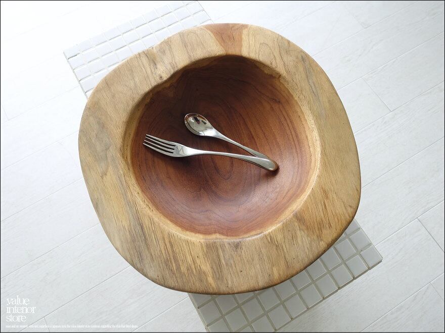 チーク無垢材 大型プリミティブオーバルトレイ / N02 入れ物 大型食器 サラダボウル 自然な様 ナチュラル Φ40.5cm 世界三大銘木