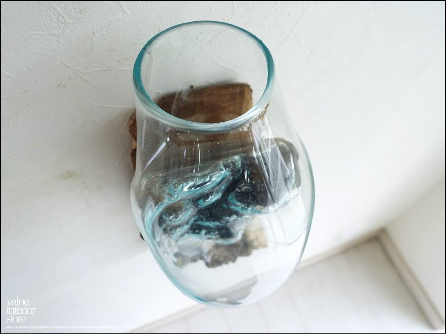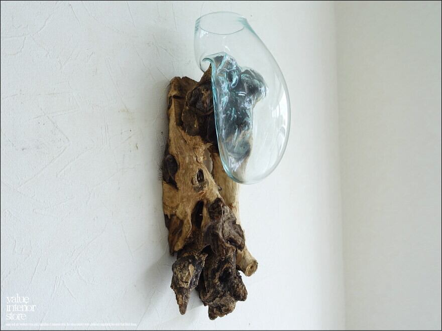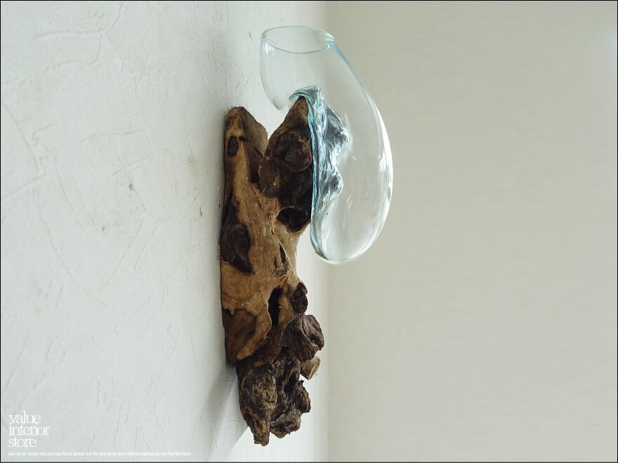硝子フラワーベースwall/05 花瓶 プリミティブガラスベース 壁掛け 花器 一輪挿し 吹きガラス 手づくり 無垢材 自然な様