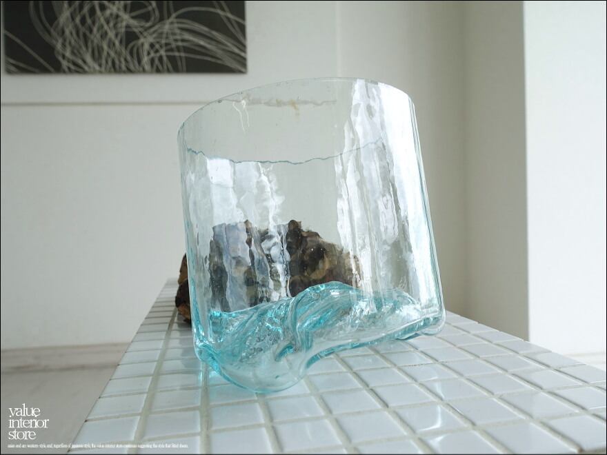 硝子フラワーベースKyli / L-02 花瓶 メダカ鉢 めだか鉢 プリミティブガラスベース 吹きガラス 手作り 一点物 自然な様