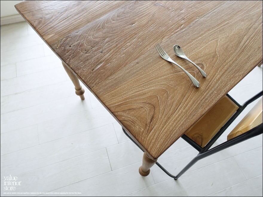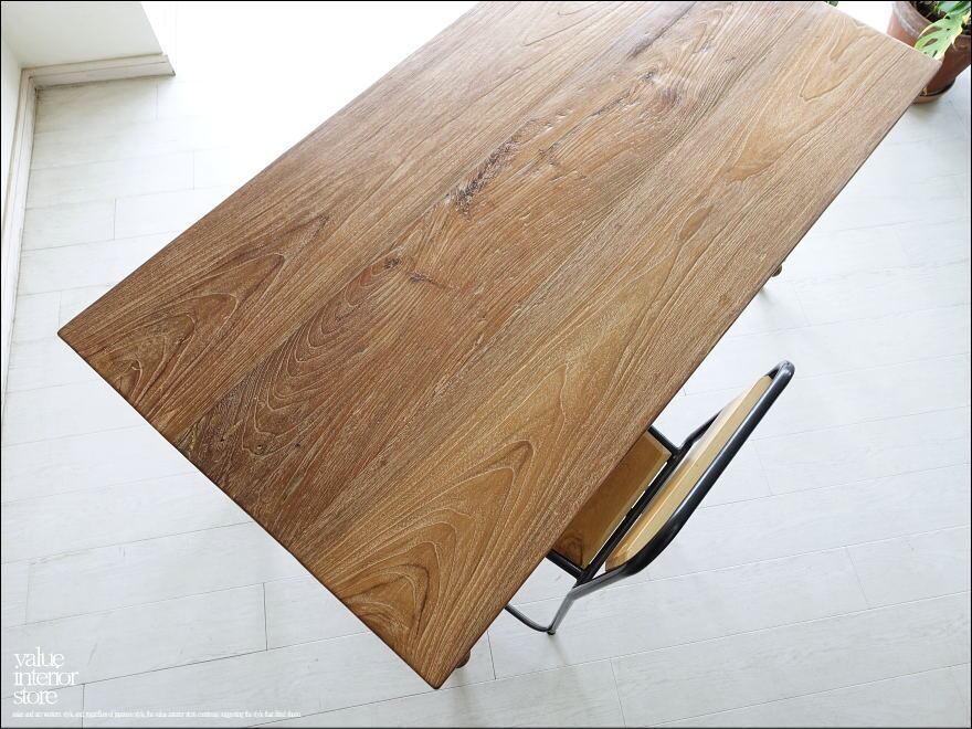 チーク無垢材 ヴィンテージテーブルAnqZ01 ダイニングテーブル 什器 一点物 再生家具 表面再仕上済 世界三大銘木 W150cm x D80cm