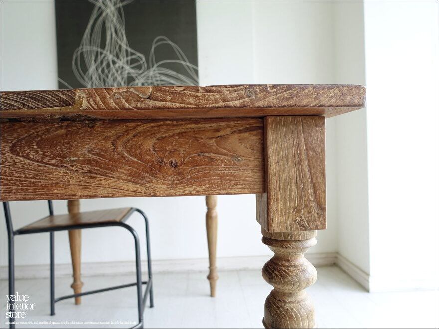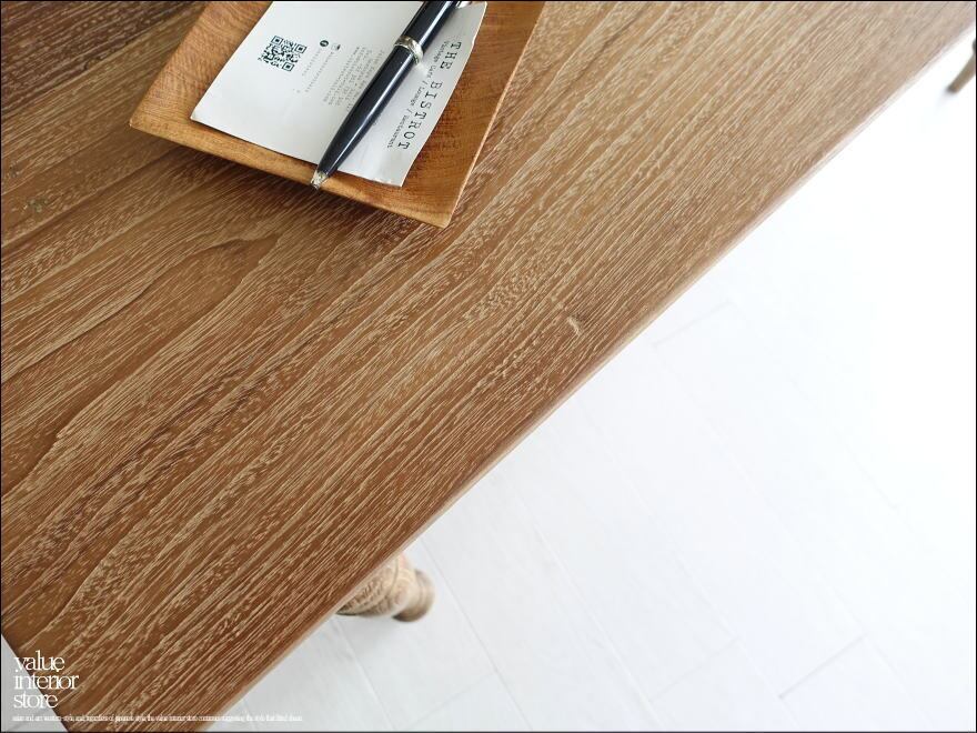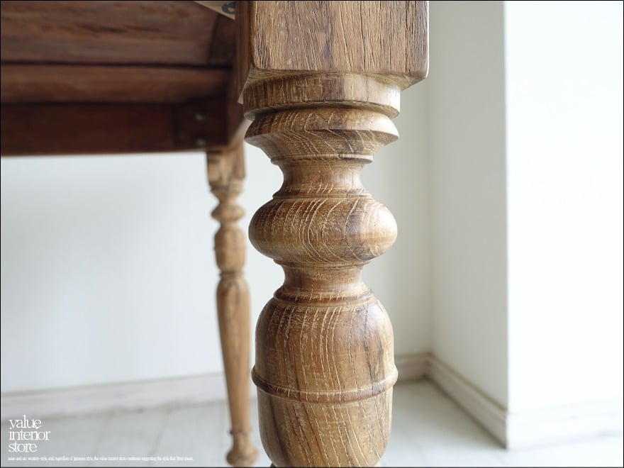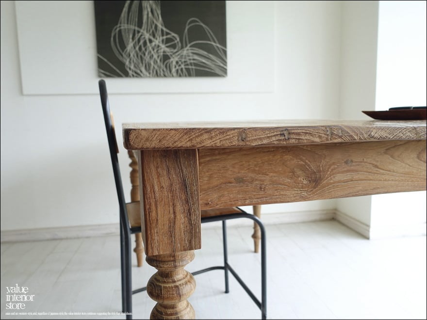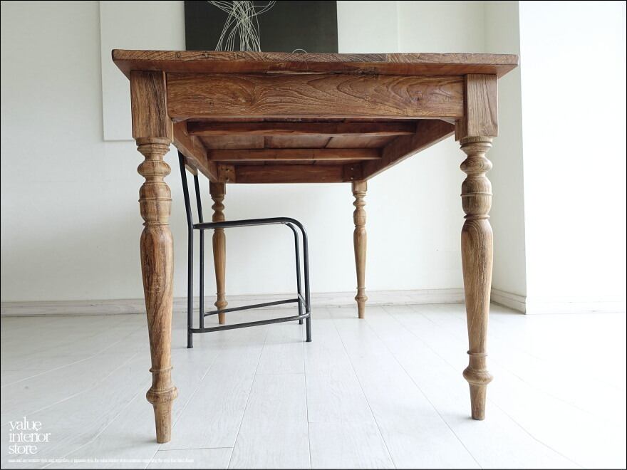 チーク材独特の色合いで、古いものならではの渋く落ち着いた質感から雰囲気が感じられます。天板はゆったりとしていて、このテーブルに向かうと自然と気持ちまで落ち着くようです。西洋、アジアン、和風モダン、北欧など幅広いテイストのインテリアと相性良くコーディネートできますのでお気に入りスペースでお使いください。
