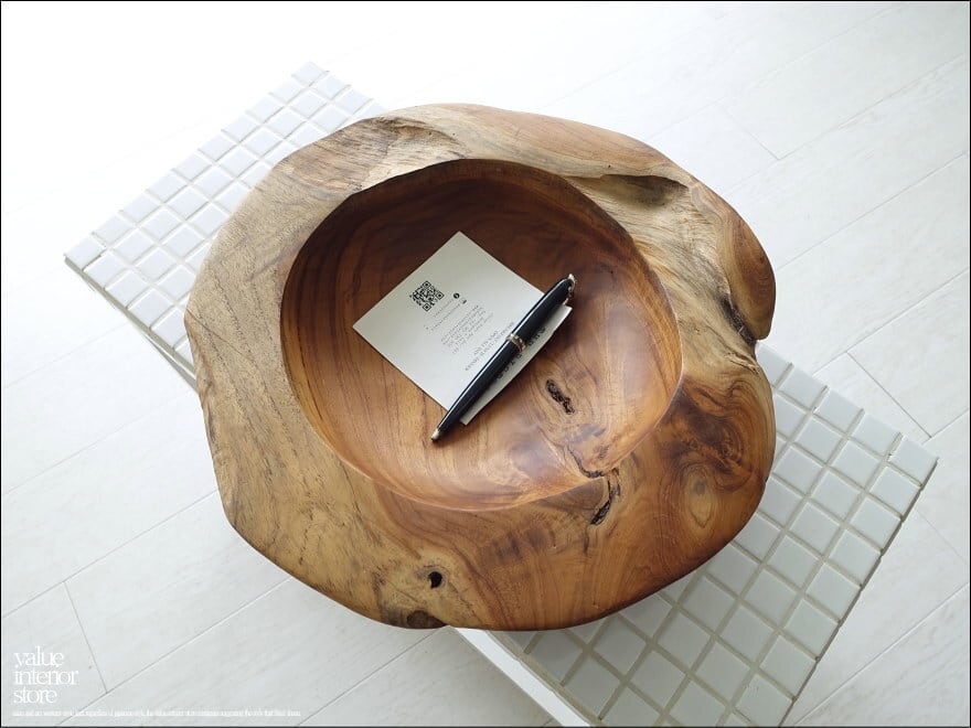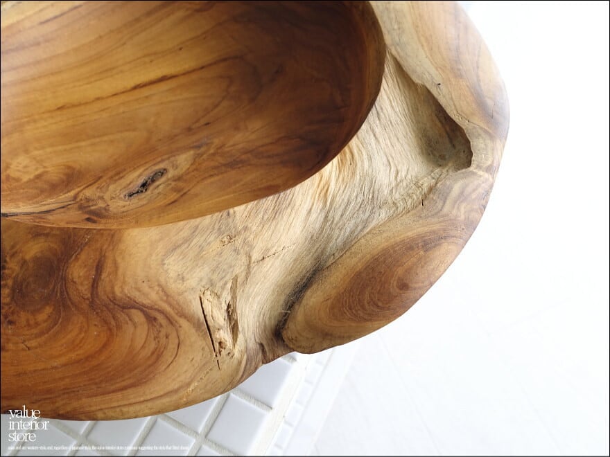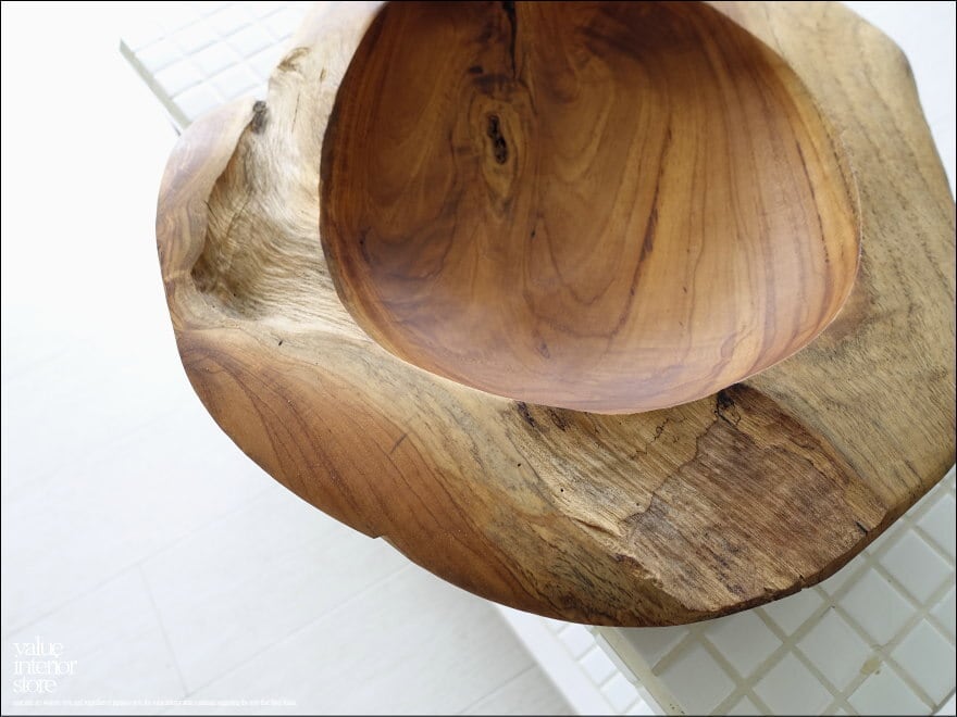 チーク無垢材 大型プリミティブオーバルトレイ / N03 入れ物 大型食器 サラダボウル 自然な様 ナチュラル Φ38cm 世界三大銘木