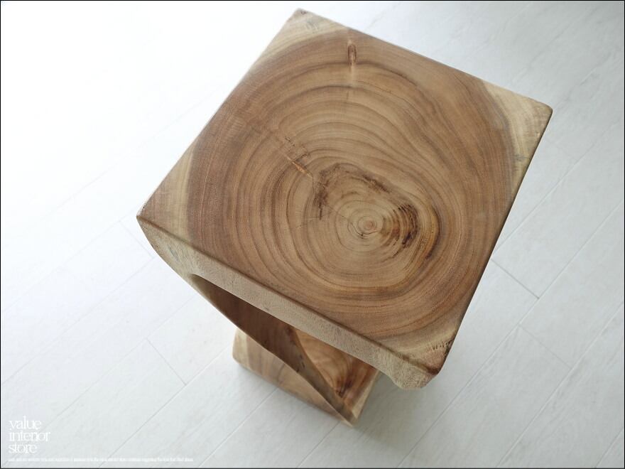 無垢材 バースツールwave/N01 イス 花台 椅子 ベンチ 削り出しスツール ナチュラル モンキーポッド H75cm