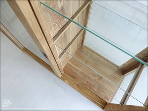 正面・側面がガラス仕様のため光が入りやすく、中に収納するものもディスプレイするような感覚で美しく飾りたくなります。真鍮の取っ手もレトロな印象でいいですね。アンティークではありませんが古くからそこにあったような温か味のある仕上がりになっています。天板部分はフラットなのでお気に入りの小物などをディスプレイしてお楽しみください。1点1点手作りで、無垢材の素朴な質感を感じさせてくれます。