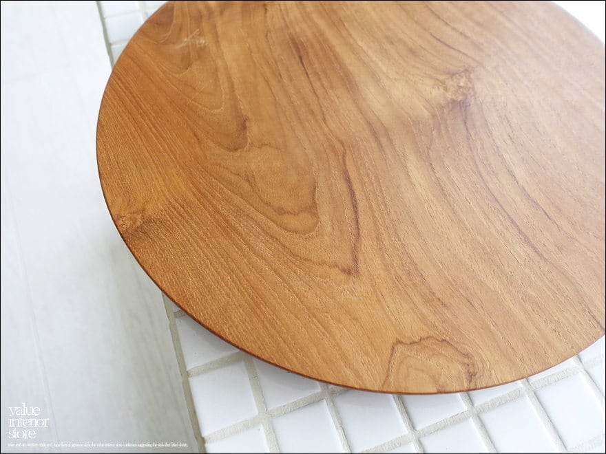 ナチュラルなチーク材の自然な木肌が素敵な円形のプレート。チークの独特で味のある木目を活かしていて、ハンドメイドながらなめらかな仕上がりで職人の技術が感じられます。