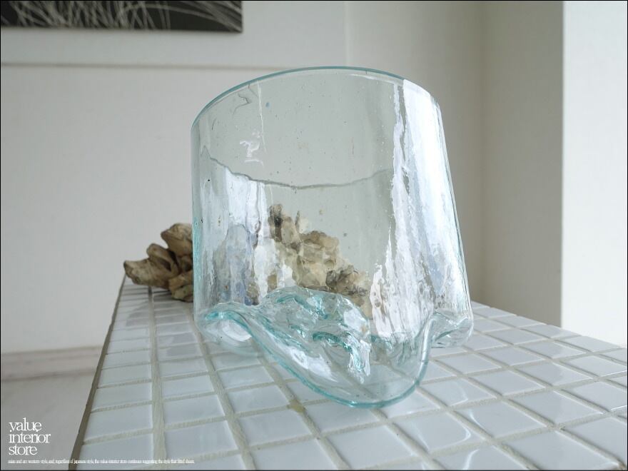 硝子フラワーベースKyli / 04 花瓶 メダカ鉢 めだか鉢 プリミティブガラスベース 吹きガラス 手作り 一点物 自然な様