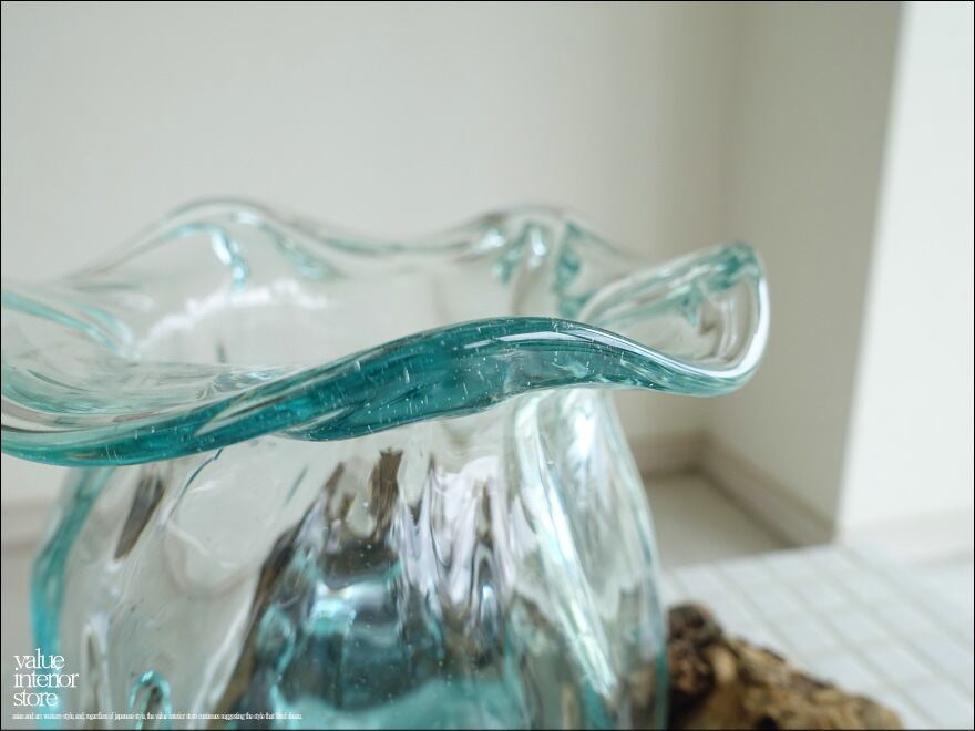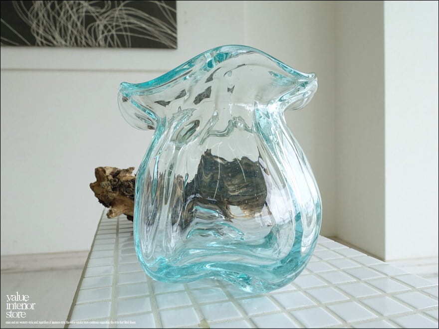 硝子フラワーベースTuli/03 花瓶 メダカ鉢 めだか鉢 プリミティブガラスベース 吹きガラス 手作り 一点物 自然な様 idavase