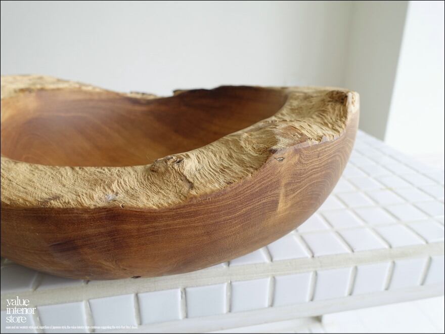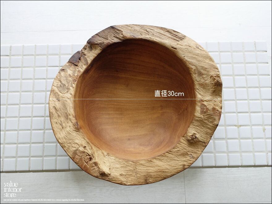 チーク無垢材 大型プリミティブオーバルトレイ / N04 入れ物 大型食器 サラダボウル 自然な様 ナチュラル Φ30cm 世界三大銘木