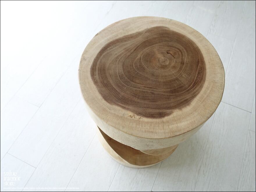 コロンとしていて螺旋状にくり貫いてあるデザインも素敵です。ナチュラルな雰囲気で幅広いテイストに合わせやすく設置しやすいスツール。スツール以外にも花台やディスプレイ台としてもお勧めです。