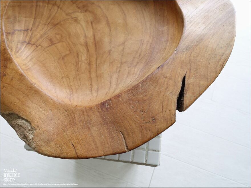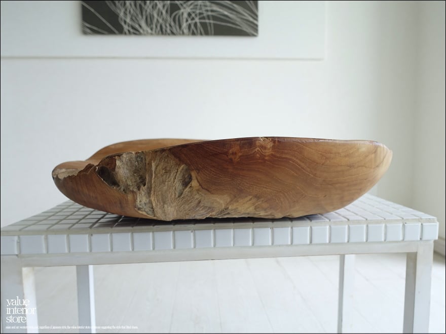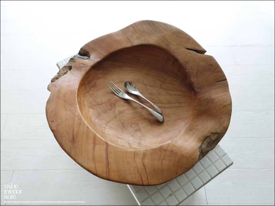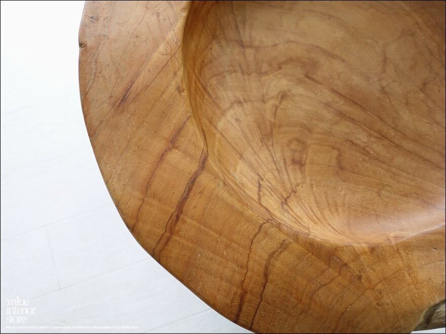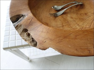チーク無垢材 大型プリミティブオーバルトレイ / N05 入れ物 大型食器 サラダボウル 自然な様 ナチュラル Φ51cm 世界三大銘木