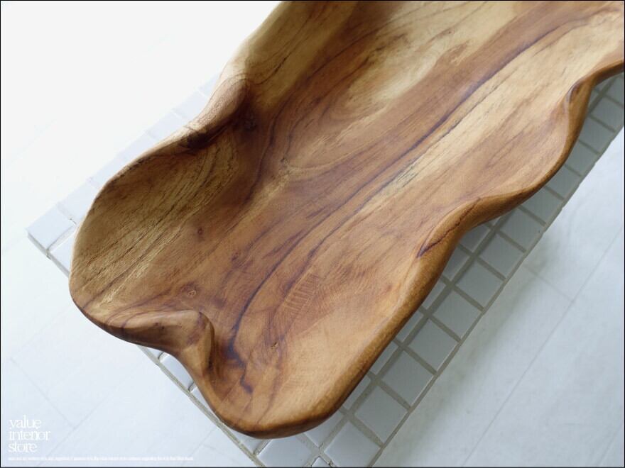 チーク無垢材 大型プリミティブトレイN61.5cm 大型食器 菓子鉢 サラダボウル 入れ物 自然な様 ナチュラル 世界三大銘木
