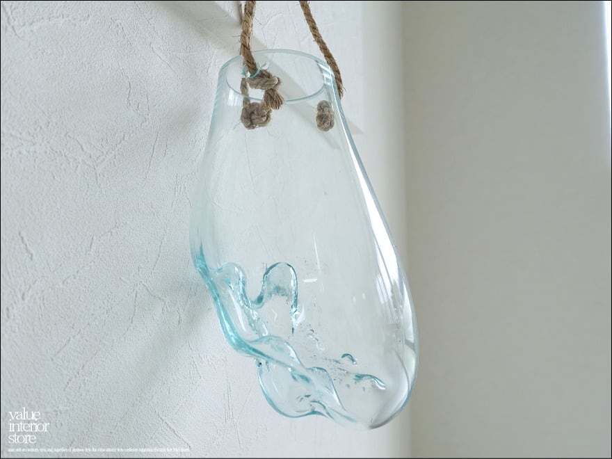 ハンギングフラワーベースNawaS01 花瓶 プリミティブガラスベース 壁掛け 花器 吹きガラス 手づくり ウォールベース 一点物 idavase