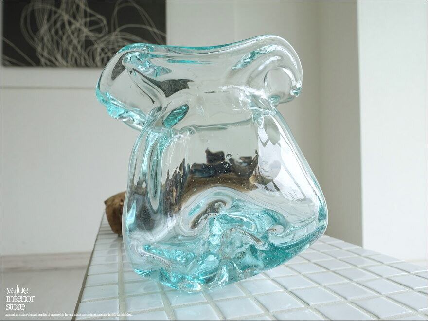 硝子フラワーベースTuli/05 花瓶 メダカ鉢 めだか鉢 プリミティブガラスベース 吹きガラス 手作り 一点物 自然な様 idavase