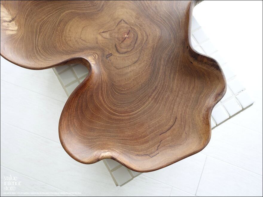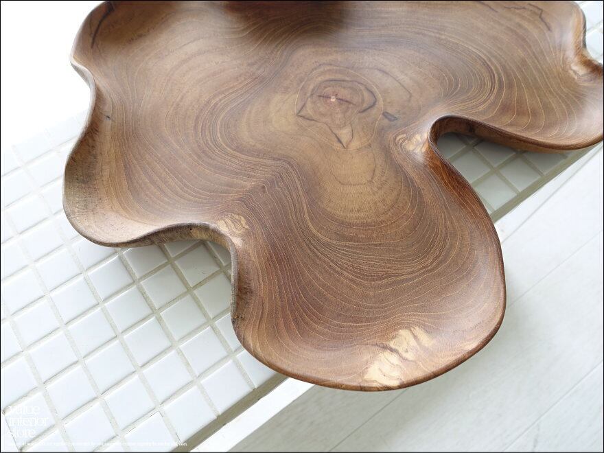 変化に富んだプリミティブで素朴な質感のチーク無垢材の大型トレイ。同じ形の無い味のある形は一点物の良さを感じさせてくれます。表面はミネラルオイル(ライム油・大豆油・チョウ