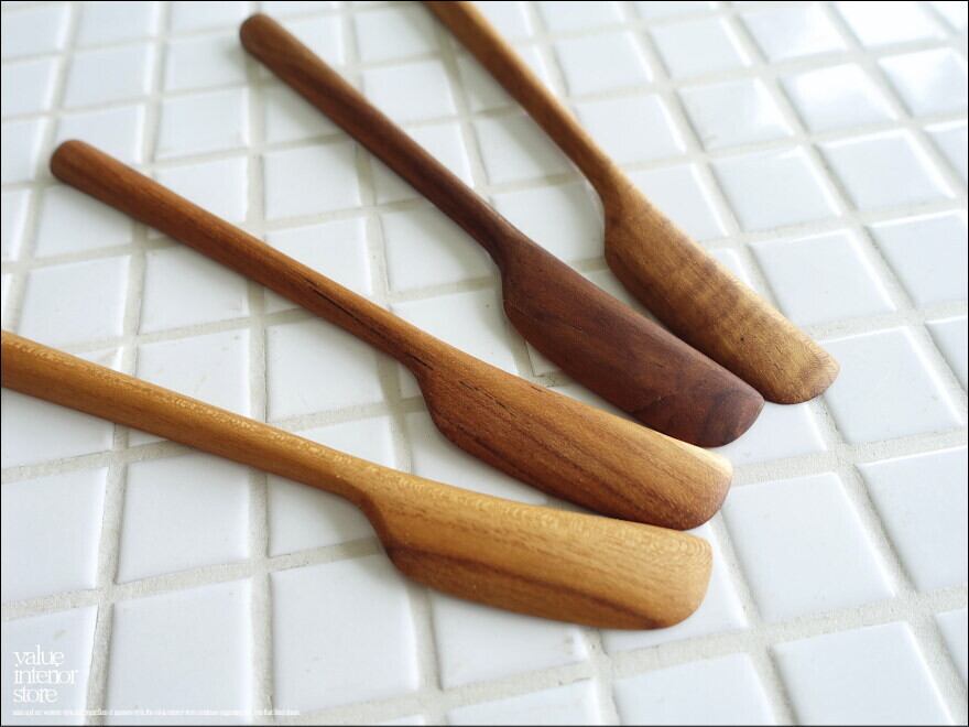 無垢材 チークバターナイフL17.5cm ジャムナイフ 木製ナイフ 木製カトラリー へら ヘラ 手作り ウッドカトラリー チーク材 世界三大銘木