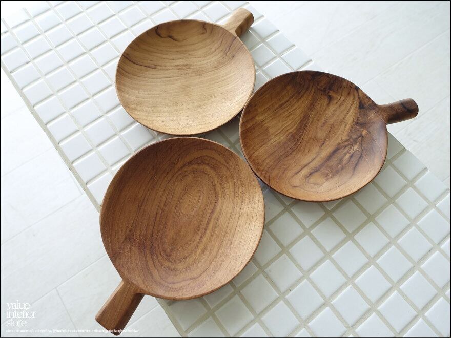チーク材の独特で味のある形や木目を活かして魅力的に仕上がっています。ハンドメイドながらなめらかな仕上がりで一つ一つに職人の技術が感じられます。食器のプレートやコーヒカップのソーサーとして、またインテリア小物やアクセサリーをトレイとしてもお勧めです。