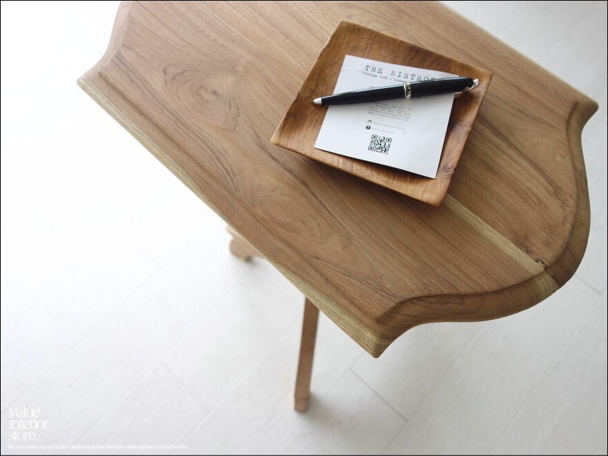 チークの硬く張りのある特徴が伝わってきて、脚と天板のバランスもとても上品です。シンプルなデザインで、チークの良さを存分に楽しんでいただける、とてもステキなカフェテーブル。